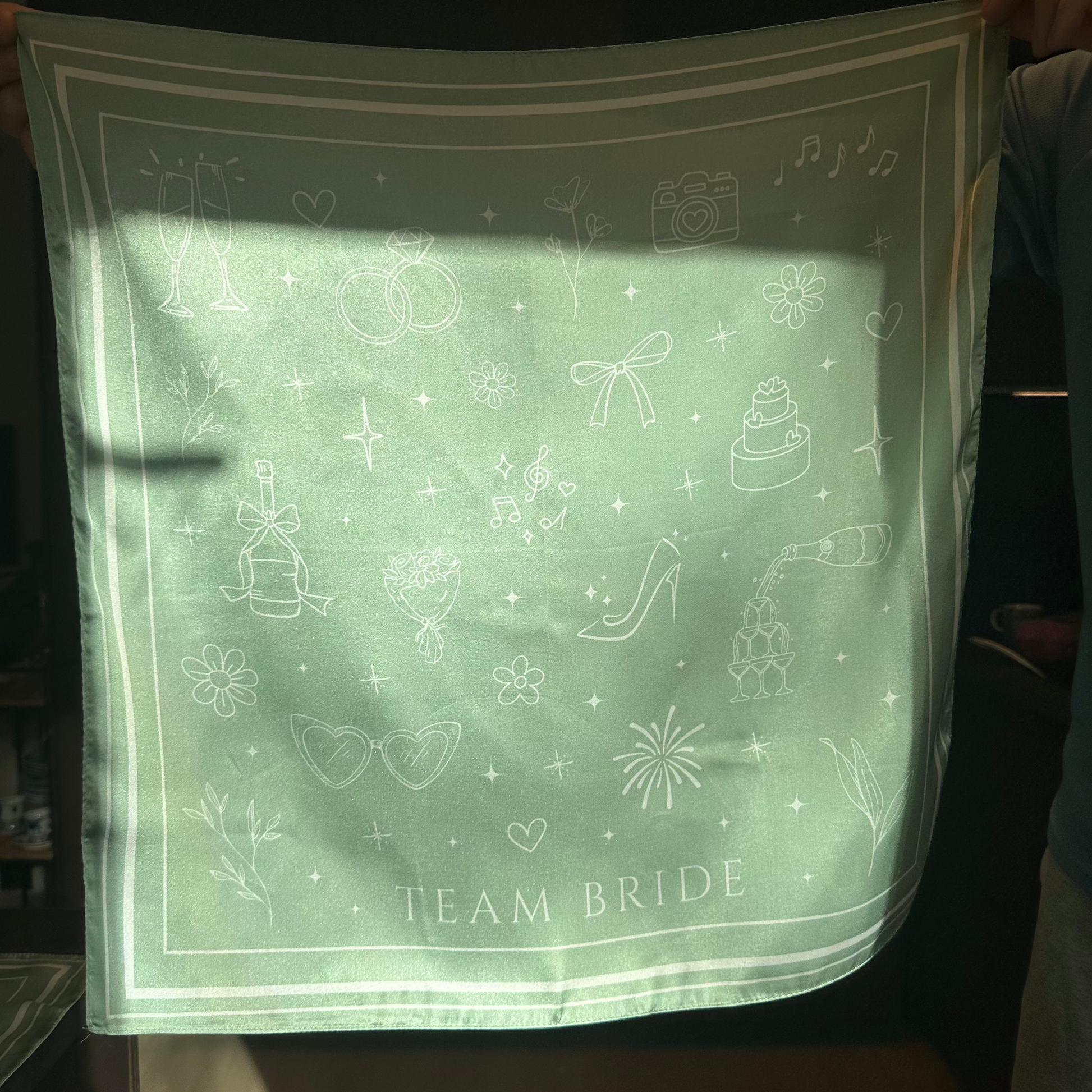 Elegant satengsjal i myk kvalitet med “Team Bride”-design. Perfekt til utdrikningslag, bryllupsforberedelser eller morgengave til brudeteamet. Gir et luksuriøst og gjennomført uttrykk – et fint minne fra en uforglemmelig feiring!