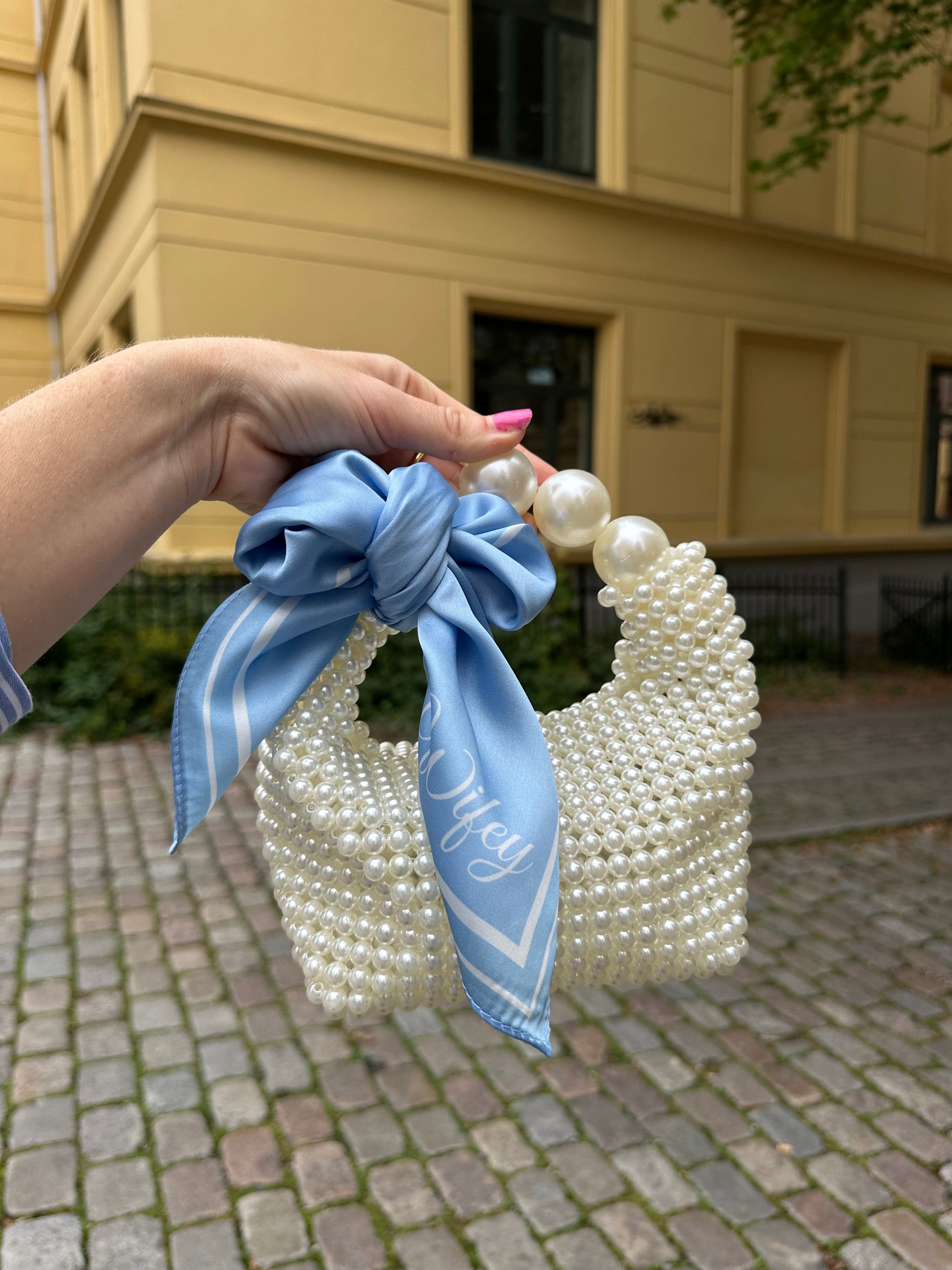 Et lekkert blått silke-skjerf med "Wifey"-print – perfekt som something blue til bruden.